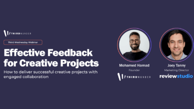 Design Third Wednesday Webinar Presents Effective Feedback for Creative Projects Mohamed Hamad Design 25 mins read March 7, 2025 Blog Design Third Wednesday Webinar Presents Effective Feedback for Creative Projects Every third Wednesday of the month, we host our Third Wednesday Webinars, where we bring you expert insights on a variety of topics. If you weren’t able to attend our last webinar, we’re including the video and transcript for Effective Feedback for Creative Projects, hosted by Third Wunder founder and president, Mohamed Hamad with guest Joey Tanny, marketing director at ReviewStudio. Mohamed Hamad: Hello, everybody, and welcome to the Third Wunder webinar, hosted every third Wednesday of the month, the Third Wednesday Webinar. Today we’re talking about creative, collaborative feedback with Joey Tanney, director of marketing at ReviewStudio. Review studio is an online proofing tool, which helps people collaborate, give feedback and get approval on creative projects. Joey, would you like to say a few words and introduce yourself? Joey Tanny: Sure, thanks. First of all, thanks for having me. It’s very exciting to see you launching this webinar. I know that you have a lot of interesting people to talk to, so I’m honored to be on this webinar. So yeah, I’ve been heading up marketing initiatives at ReviewStudio for the past five years. It’s been a very interesting journey. If you’d asked me five years ago what I thought about effective creative feedback, I would have told you I have no idea what that is. So it’s really interesting to be here today talking about it. You know, I speak to hundreds of customers a year and if you add that up—so I’ve heard a lot of stories, good, bad, ugly about creative feedback. So yeah, I’m very interested here to talk to you about it and here I know because as you know, you’re an agency president, so you’ve been working a lot with a lot of clients and a lot of creative processes. So, it’s very interesting to hear your perspective, as well as your experiences. Mohamed: Yeah, I mean, creative, creative collaboration is at the heart of what we do at Third Wunder. It’s always a challenge to make sure that everybody’s on the same page when it comes to creative projects. There’s so many stakeholders in a project. There’s so many different tools and different ways of getting feedback. Obviously, you know, we’ve all had the jokes of client feedback coming in, in different ways, and having things like, “I just wanna make it pop a little bit more” or, you know, “I’m not sure about that.” This feels weird, but, you know, in the grand scheme of things, you know, how to give collab, how to give feedback is a little different. Than actually managing the feedback in a project. And that’s the biggest piece there. How do you get all the feedback from different stakeholders to move a project along and make sure that you get to the finish line of a project because there could be so many delays. There’s gonna be so many different stakeholders, so many different opinions, backgrounds, and all of that. And just wanna throw it out there to our viewers here. What are some of the challenges that you’ve got, when it comes to collaborative feedback or creative projects in general? What are some of the most interesting things that you’ve heard? Throw them out in the comments in the chat there. And, also, by the way, as we go through this discussion, if you have any questions, please throw them into the comments and we’ll address them towards the end of this webinar. Joey’s gonna give us some interesting tips on how to manage creative collaboration, and we’ll answer questions towards the end. In saying that, Joey, how do you see creative feedback sessions going? Because there’s so many things happening. What are some of the experiences that you’ve had with ReviewStudio? Joey: Yeah, so I think when you start a conversation about creative feedback, the best place to start is—say there’s two core elements to feedback, right? You have how you gather it and then how you manage it, right? So the first step in any process is getting the feedback, right? And then I think where many people fall off the cliff is going to be on managing it. When it comes to gathering, there’s kind of two different elements, I would say. So the first one being, of course, your skills as a communicator, your skills, you know, do you have empathy? Are you an active listener? And that actually is how you give good feedback, right? And then there’s a whole element of, of where that resides. So what tools are you using? Are you burying it deep inside an email? Are you putting it inside your project management tool? And then that becomes difficult to in turn manage, which comes in after you give good feedback, right? So, when you’re approaching feedback, it really is holistically. I could give you tips on gathering feedback, but I’m sure everybody here really has that part nailed down. I hope. But I think where a lot of people fail is in the second part of that, which is the managing of [feedback]. So on what platform do you gather it and then ultimately, where does it sit? Where does it stay? I think a lot of people do it in a range of ways, right? So, there’s productivity elements when you’re talking about collaboration, right? For example, when you hop on a Zoom call and you give people feedback, you might, you know, go on Teams if you’re forced to use Microsoft tools. You might also use Slack or, email is probably the most common form, right? You’re going to send a long email with your video markups or change requests and whatever. Oftentimes they happen in project management tools, so I mean, there’s a list there and everybody has their own tools. And then they also happen in asset managers, so you can go into Google Drive, you can go into Box and leave very quick small pieces of feedback on any range of files, but it do