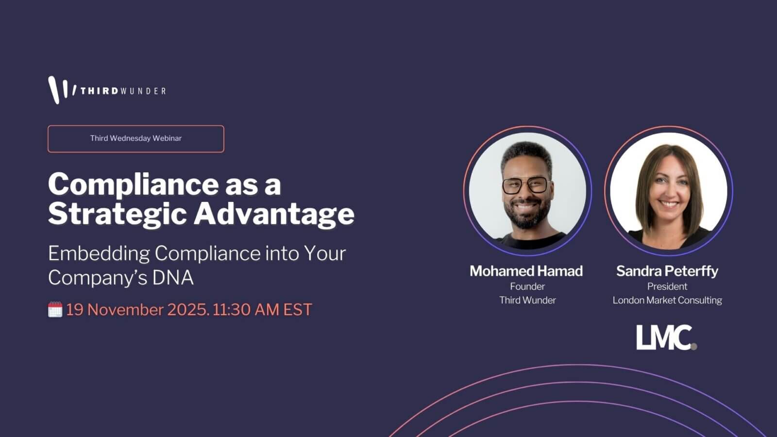 The Trust Framework: Compliance as a Strategic Advantage 19 novembre 2025 / Registration Open Published: octobre 21, 2025 Learn how modern enterprises leverage compliance not as a cost center, but as a key driver for building market trust, accelerating enterprise readiness, and securing investor confidence. Events The Trust Framework: Compliance as a Strategic Advantage What would happen if you made compliance part of your strategy? Most companies start thinking about compliance only when someone asks for proof. A customer, an auditor, or an investor. By then, it feels like a scramble. But compliance does not have to be that way. Done right, it can become one of your most useful business tools. It can build trust, smooth growth, and give investors confidence. In this 30-minute session, Sandra Peterffy, President of London Market Consulting, will share how to turn compliance from a cost center into a competitive advantage. You will hear what works, what does not, and how to build programs that fit your company’s stage of growth without slowing you down. What you will learn In this practical, no-fluff session, you will learn how to: Shift from checklist compliance to programs that drive performance. Build trust by making compliance part of how your team works every day. Design a scalable, right-sized framework that grows with your business. Know when to formalize, when to stay flexible, and how to avoid overbuilding too soon. You will walk away with a clearer sense of how to make compliance work for you, not the other way around. Why this matters Compliance can feel heavy, but it does not have to. When you weave it into how your company already works, it becomes part of your culture instead of an afterthought. It builds confidence with investors, partners, and your own team. It also gives you breathing room to grow without scrambling every time a new requirement or deal comes up. At its core, good compliance is not about red tape. It is about trust. And trust is what lets you move faster, close bigger, and sleep better.