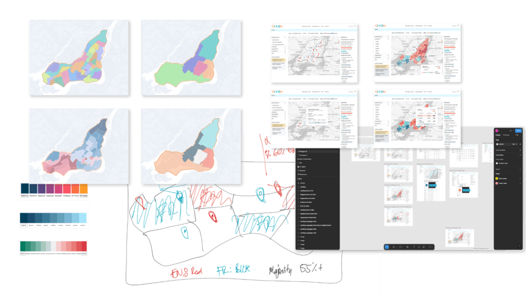CHSSN Building Tools for better Health Care Supporting the English-speaking communities in Quebec through promoting equitable access to health and social services in English and addressing social determinants of health by relationship building, knowledge sharing, empowering, and training. About Formed in 2000, the Community Health and Social Services Network (CHSSN) is a nonprofit organization that supports English-speaking communities in Quebec in an effort to redress health status inequalities and promote community vitality. The CHSSN works with more than 60 member organizations across the province. They’re also involved in over 40 projects and partnerships in areas like primary health care, community development and population health. The Mandate Following the successful rebrand and launch of their new website, CHSSN approached us with an ambitious project to transform their existing database of resources and data related to the Greater Montreal area into a more user-friendly format. They were looking for a development and design team to bring that data to life with an interactive and engaging map that gives the CHSSN team and its member organizations an impactful tool to better serve their constituents. The Challenge This project was born out of CHSSN’s frustration with a lack of existing tools for parsing vast and complex data sets in a way that provided meaningful insights. At the onset, there was no way to compare data or visualize coverage. Our first challenge was to create a visual representation of Montreal that could break down the data by region, cities and boroughs, as well as regional tables for dispersing funds. To support the creation of this map, we also had the challenge of sorting and categorizing all of the data into a clear and easy to understand format while maintaining its accuracy. We also needed to build a system that would allow organizations to create profiles, manage their service information, and make updates as their coverage changes and expands. This system needed to be user-friendly and intuitive to use. Our Approach From start to finish, this was a deeply collaborative endeavour. We worked closely with CHSSN and their data scientist to understand the scope and breadth of the data involved and to organize it into the categories that would be most relevant to the CHSSN team and its membership. Developing the app was an iterative process. We created multiple prototypes as we deepened our understanding of the needs of the end user and what would be the most relevant to their experience with the app. We were also able to work with a select tester group for an in depth feedback process to help meet our goals for a user-friendly and relevant tool. Marketing What Matters A Map Like No Other We built an app that addressed the fundamental disconnect between how health data and resources are presented in reports and how to make them more relevant and useful to CHSSN and their member organizations. The end result is a tool that can: Provide a visible illustration of the service gaps while providing concrete data to back it up Provide a directory of organizations to facilitate greater inter-organization collaboration Provide organizations with actionable data on the constituency they serve This is making it easier to mobilize resources to bridge gaps in vital services and to ensure that no community is underserved. With the map live, we continue to work on this on-going project that improves the greater good. Make sense of the data Developing an Interactive Data Visualizer There were no out of the box solutions to create what CHSSN was looking for. All of the existing mapping tools were overly complex, requiring extensive technical knowledge to use and understand. This meant we had the freedom to build our web app from the ground up and create a product that fully embodies the mandate of this project. Understanding the Data By far the biggest challenge was to manage the massive amount of data that CHSSN had collected on health resources within the project. We worked closely with CHSSN’s data scientist to sort the data and create a scalable database that could be sorted and correlated with the regional structure of the province. This required multiple rounds of revisions to preserve the accuracy of the data. An Iterative Process The development of the app was always evolving as we found different ways to manage and present information. Multiple prototypes were created as we received more statistics about the services and coverage of member organizations. This iterative process allowed us to fine-tune the user experience. Testing in Collaboration Once we had settled on a working version of the app, we put it in front of a select tester group. This early pilot project generated several rounds of feedback that informed ease of use and UX. Additionally, our select tester group provided us with valuable insights into relevant terminology and use cases for the app. A community lead collaboration Facilitating Member Organizations A key facet of this project was to allow member organizations to manage and update their own information about their services and coverage. We were able to map the user experience with the goal of building a simple and non-technical UI. It was important that we not create any artificial roadblocks preventing organizations from contributing to the map. Launching the Project Charting the Way Forward In late April of 2024, we launched the web app to CHSSN’s member organization. This generated a lot of excitement from organizations across Montreal. Politicians and other health officials also expressed interest in joining, which led to more regions wanting to be added. Expanding Horizons Since the successful launch of the web app, we’ve facilitated access for non-member organizations and government officials, as well as entered a new phase of development. Work is ongoing to add Laval and the Montérégie region to the existing map with the event